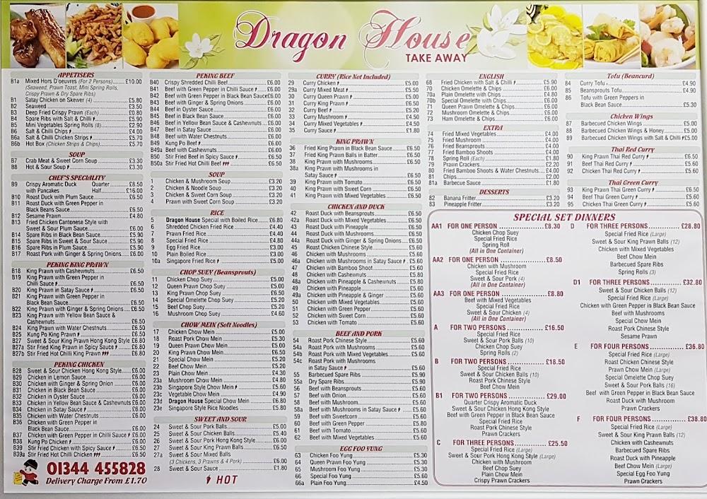 Tucked away in the heart of Bracknell, Dragon House stands as a staple of the local dining scene. This family-run establishment has been serving up culinary delights for over 15 years. The area surrounding Dragon House offers a cozy suburban vibe, making it a great spot for families and friends alike. The accessibility features are commendable, including a wheelchair-accessible car park and seating areas, welcoming everyone to indulge in their flavorful meals. Parking is a breeze, with plenty of free street parking nearby. Dragon House opens every day of the week, ensuring you can satisfy your Chinese food cravings any time. The casual atmosphere attracts diners looking for a relaxed setting to enjoy their meals, whether they choose to eat in or take away. Reservations are accepted, which is a great bonus for those planning special dinners or family gatherings. Overall, the restaurant radiates a warmth that has made it a beloved fixture in the community.